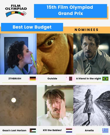 🏆 We remain proud of all participating creators, regardless of budget, fame, or origin. Besides, Film Olympiad's unique competition format guarantees equal chances for everyone. However, we feel obliged to acknowledge the participation of at least a few among our artists: