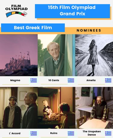 The Film Olympiad returns with the 15th Grand Prix, taking place for the 3rd time at the historic 300-seat Cine Paradeisos Cinema in Athens.
