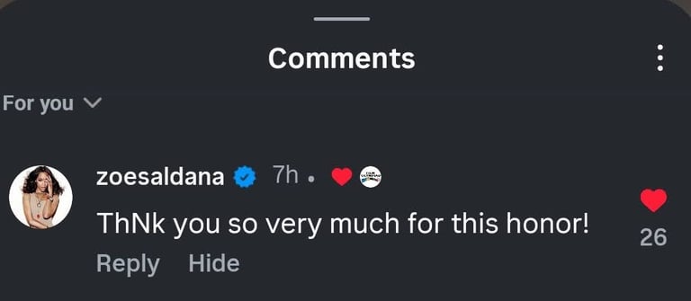 Filmography: Avatar, Guardians of Galaxy, Emilia Perez, Avengers, Colombiana,